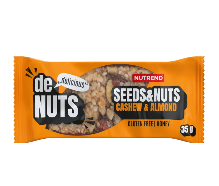 NUTREND DeNuts 35g Seeds+Nuts 35g. Természetes mag- és dió szelet mézzel– Kesudió & Mandula ízesítéssel.